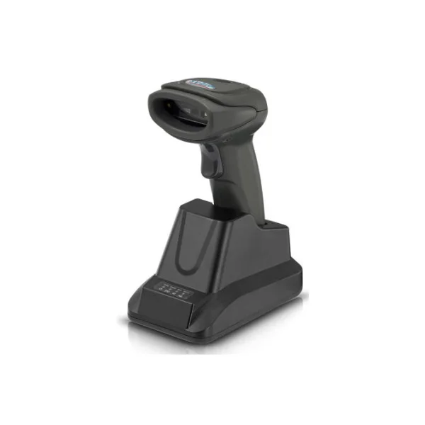 - Charging cradle simultaneously serves as the wireless base station receiver, meaning a single counter installation serves both functions — keeping the scanner charged and maintaining the wireless connection to the POS system when the scanner is in use across the floor