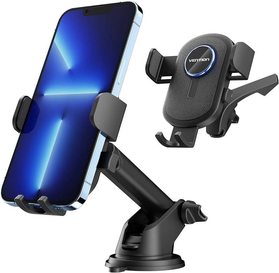 Vention One-Touch Clamping Car Phone Mount with Suction Cup Black, KCVB0